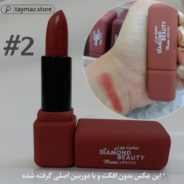 رژ لب جامد دیاموند بیوتی مدل 1714 ظاهری برجسته و مات به لب ها می بخشد.